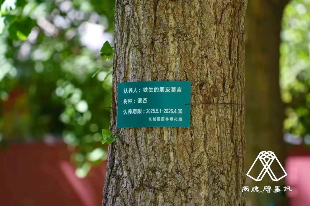 一棵银杏树上挂着“认养人:铁生的朋友莫言”的牌子。本文图片来源:两块砖墨讯